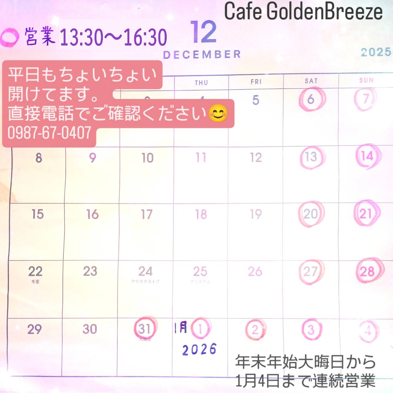 皆さま、いつも cafe Golden Breeze をご愛顧いただき、誠にありがとうございます。